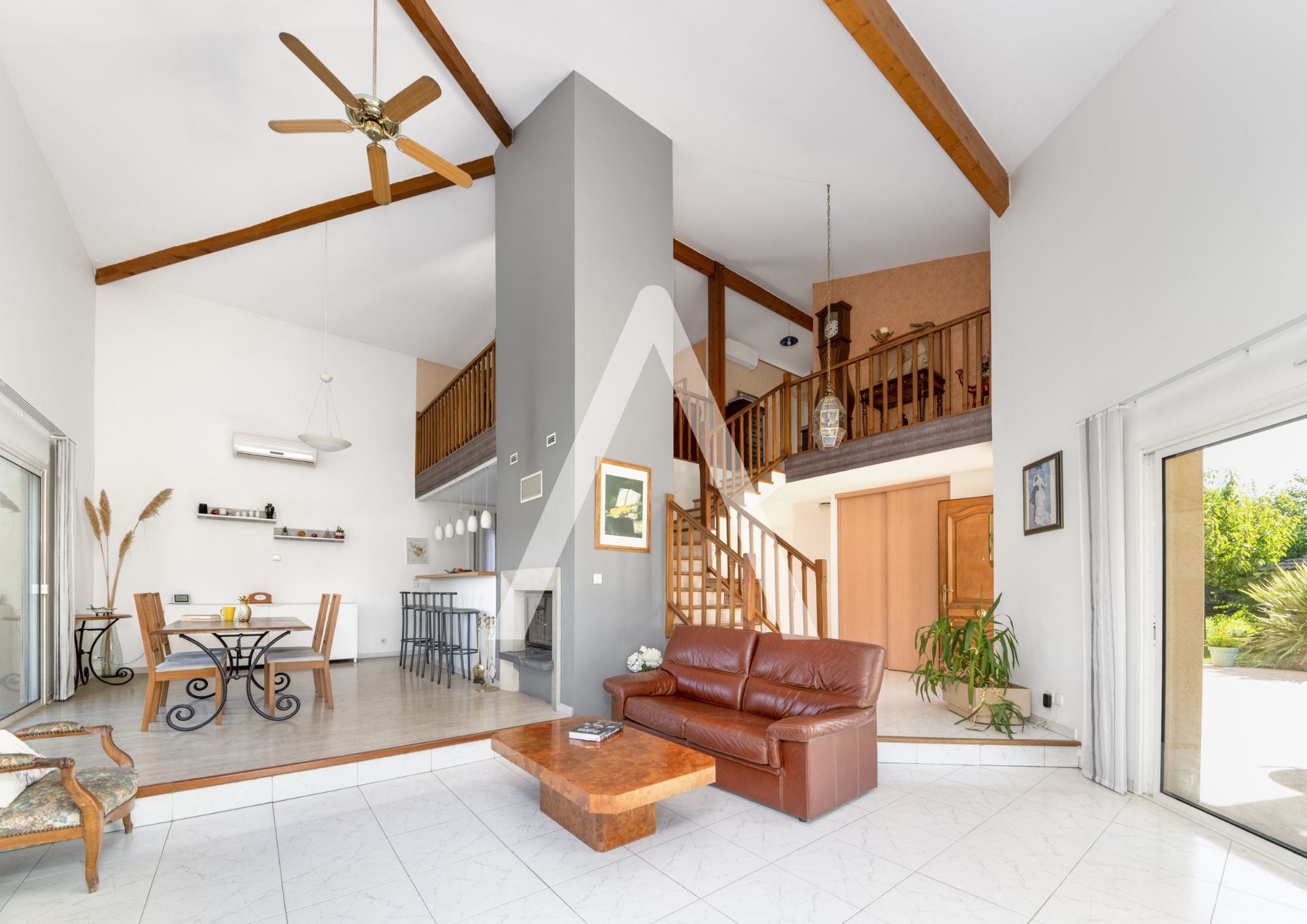 Maison contemporaine d'architecte de 157 m2, construite en 1995 sur une parcelle de 1 300 m2, avec piscine, terrasse couverte de 50 m2 et double garage.