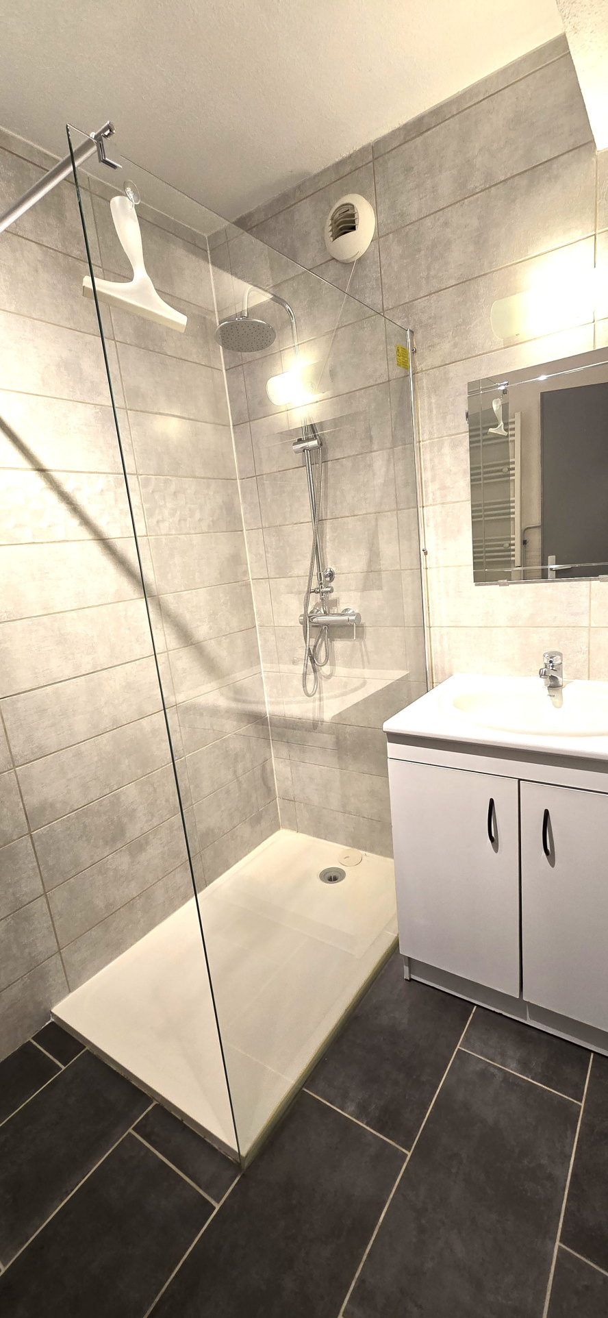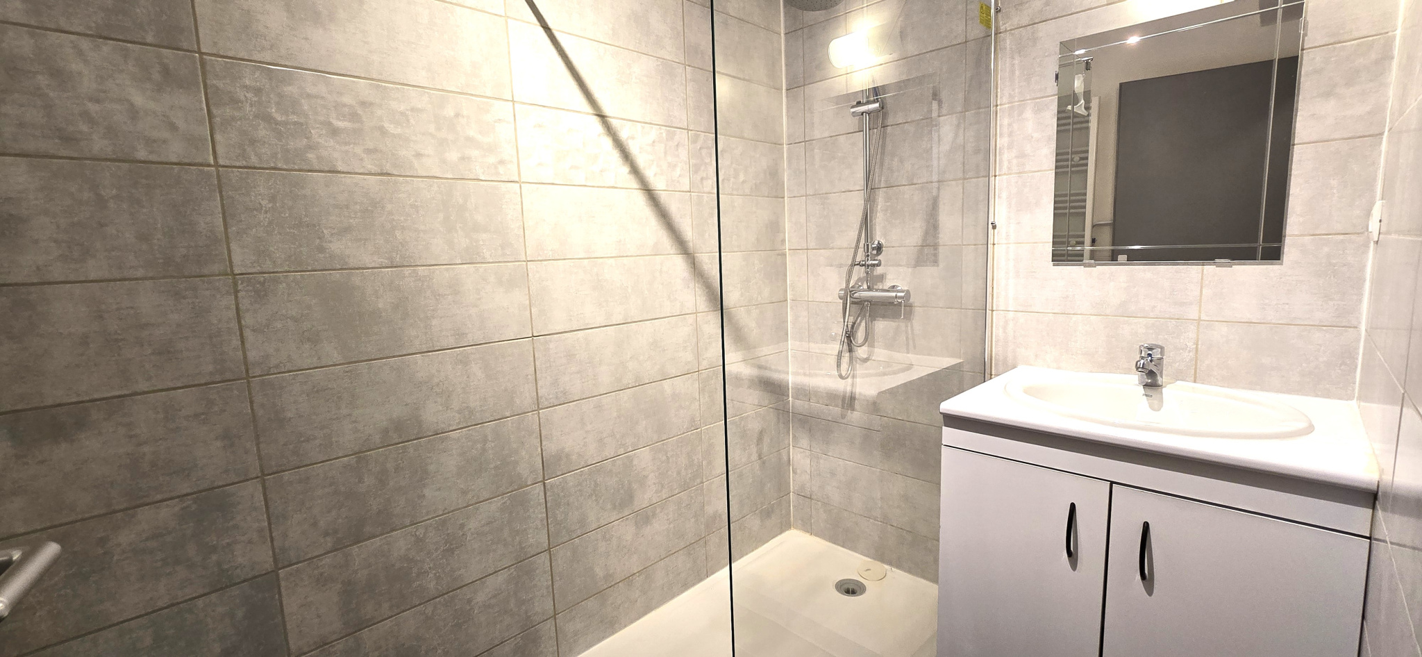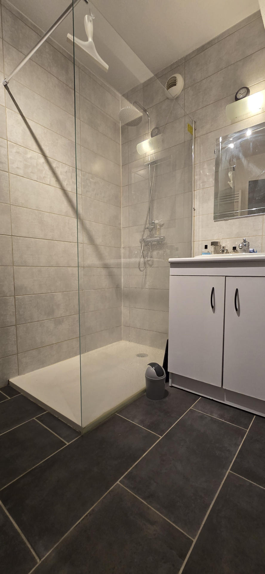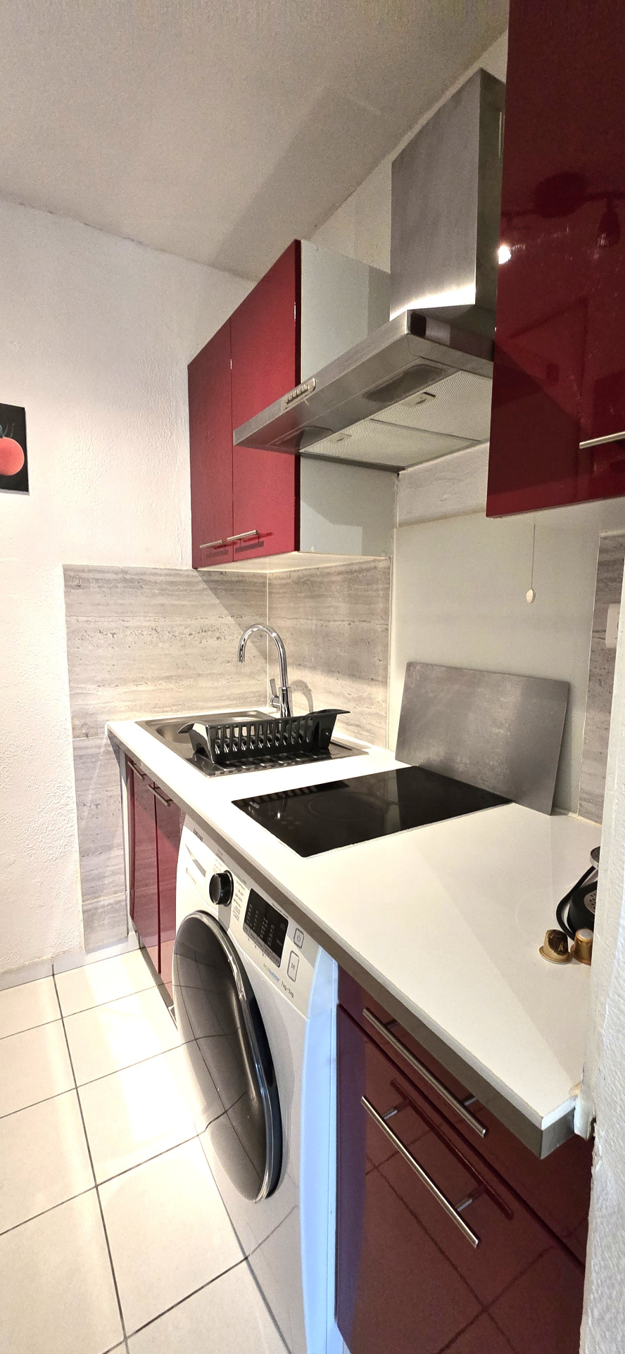 L'appartement se situe à l'arrière du bâtiment. Il s'agit d'un T2 en rez de jardin totalement sécurisé. Il se compose d'une entrée avec placard, d'un séjour ouvrant sur la terrasse couverte et le jardinet, d'une cuisine ouverte entièrement équipée, d'une chambre, salle d'eau et WC séparé.
