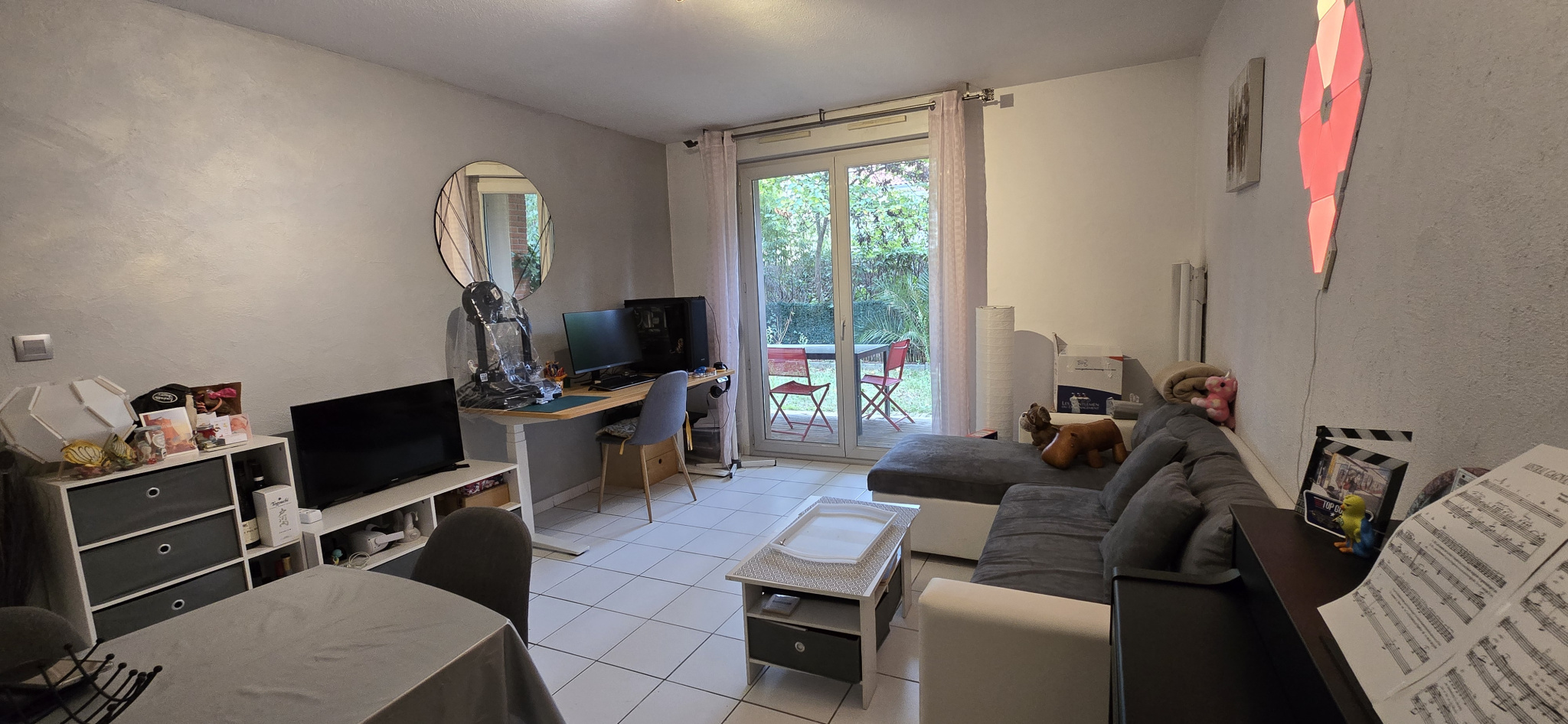 Quartier Saint Simon Limitrophe Tournefeuille. Dans une petite résidence sécurisée avec piscine, en fond d'impasse, appartement T2 de 38m2 avec terrasse et jardinet exposé Sud Est.